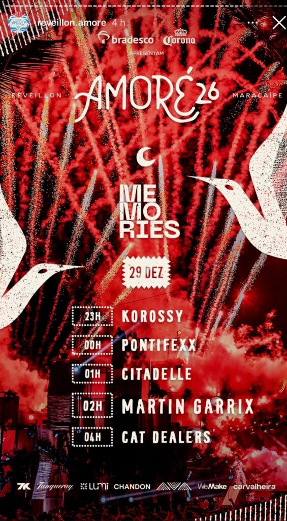 La noche del 29 de diciembre dejó huella como uno de los momentos más destacados del Réveillon Amoré 26. Memories cumplió con su nombre: una celebración electrónica que quedará grabada en la memoria de quienes la vivieron, marcando el inicio de un nuevo año al ritmo de la mejor música.
