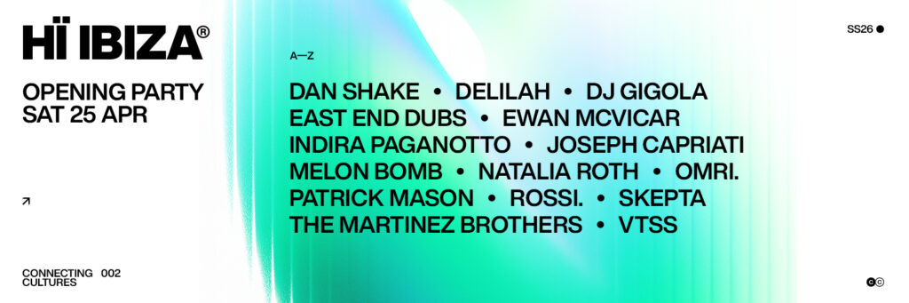 Fiel a su filosofía Connecting Cultures, Hï Ibiza reunirá en sus tres salas de última generación a algunas de las figuras más influyentes de la escena global. En el Theatre, nombres como East End Dubs, Ewan McVicar, Joseph Capriati, OMRI., Rossi., Skepta y The Martinez Brothers dibujan un recorrido que va del house más preciso al techno con mirada contemporánea, sin perder nunca el pulso de la pista.