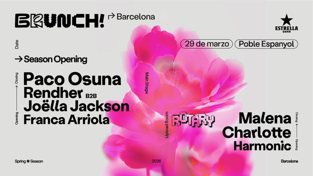 Como parte de este Opening Season, Brunch Electronik volverá a apostar por una propuesta paralela en el Upload Room, que en esta ocasión contará con una curaduría especial de Rotary, colectivo barcelonés centrado en la cultura club y la electrónica underground. Este espacio pondrá el foco en nuevas narrativas sonoras y talento emergente, reforzando el compromiso de Brunch con la diversidad artística y la escena local. El cartel del Upload Room estará formado por Malena, Charlotte y Harmonic.