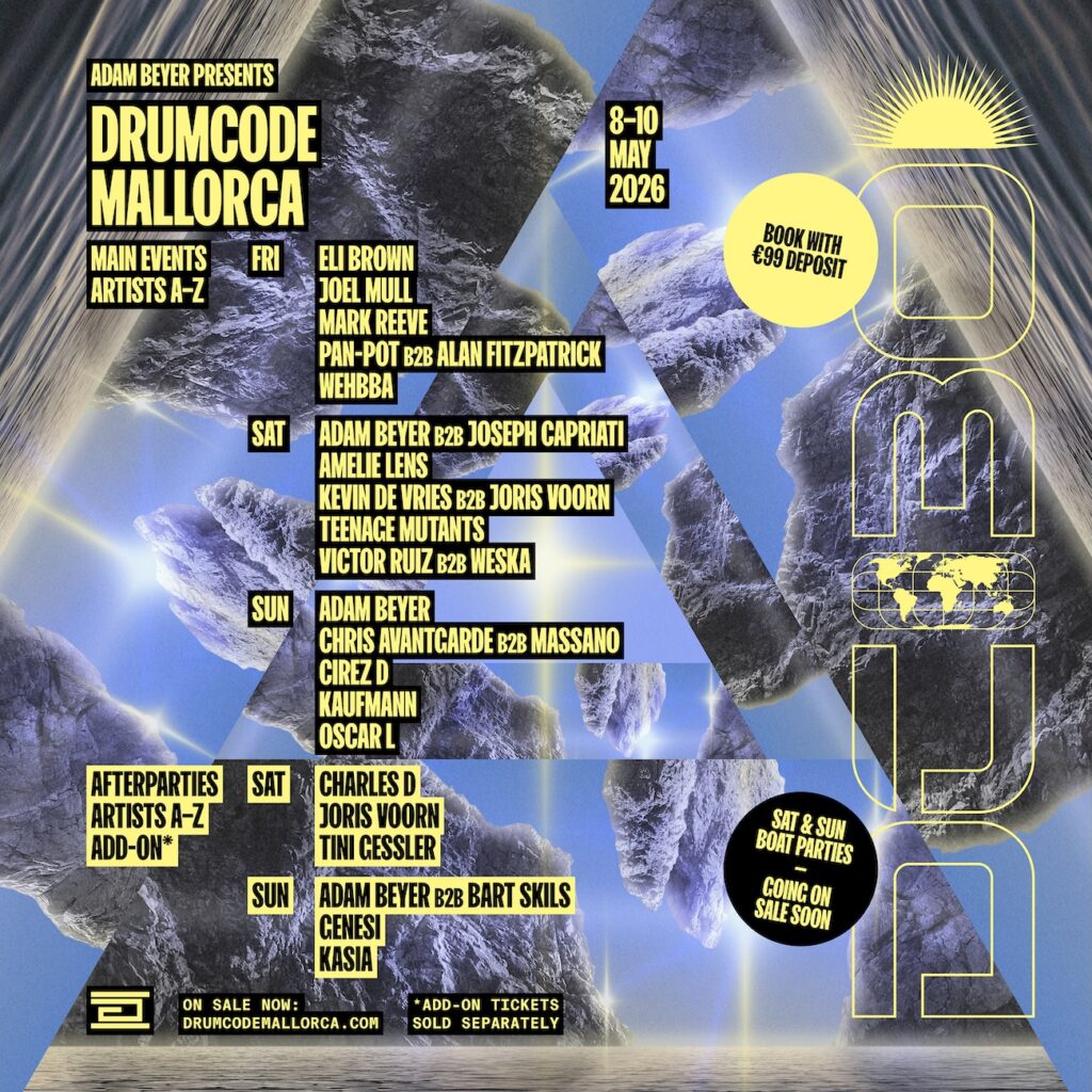 Con esta edición aniversario, Drumcode Mallorca se consolida como una de las citas imprescindibles del calendario techno europeo, uniendo música de alto nivel, localizaciones icónicas y el legado de uno de los sellos más influyentes de la historia de la electrónica.
