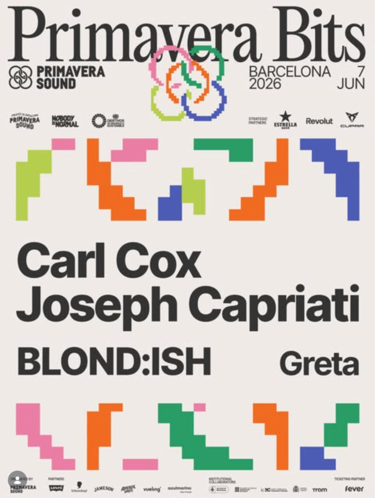 - Primavera Bits, la cita electrónica del domingo 7 de junio en el Parc del Fòrum, que pondrá el broche final al festival con Carl Cox, Joseph Capriati, BLOND:ISH y Greta.